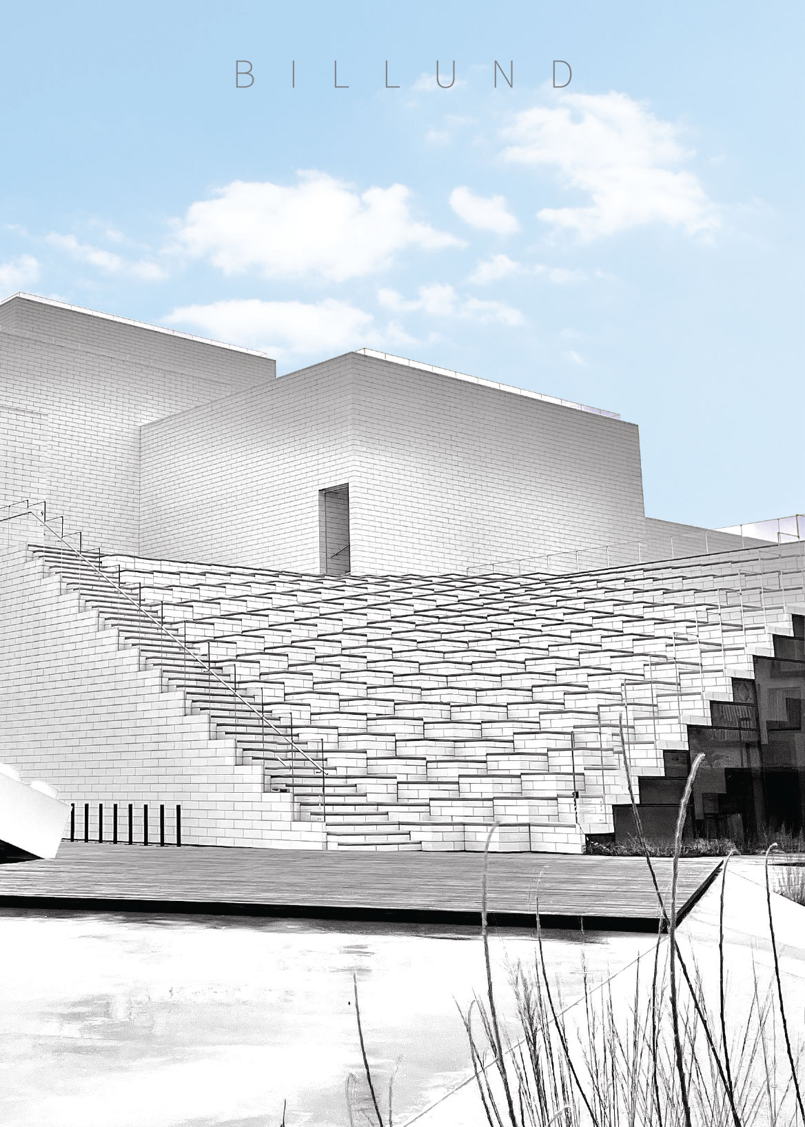 Billund bymidte – smuk arkitektur i al sin enkelthed. Når du er på ophold i Billund og besøger Legoland, LEGO House eller Lalandia kan du bestille din plakat som minde fra et skønt område. Plakaten vil være en flot og stilren vægdekoration i dit hjem.