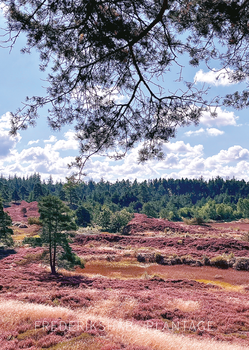 Frederikshåb Plantage – sydøst for Billund. Lyngen blomstrer i det smukke landskab. Et oplagt sted at besøge for en gåtur i en unik og smuk natur, når du er på ophold i Billund og besøger Legoland, LEGO House eller Lalandia. Din plakat – som et minde fra et flot område.